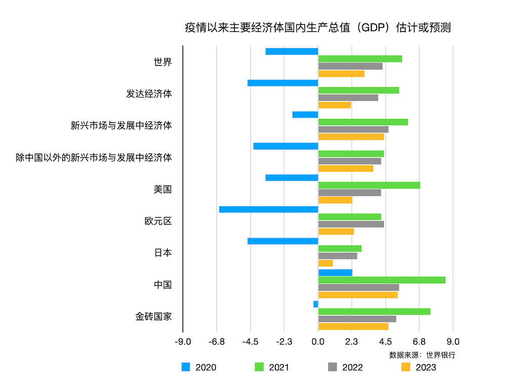 世界银行预测,2021年全球经济将增长5.6%,这是80年来衰退后最快的速度,这主要是得益于几个主要经济体的强劲反弹。不过,许多新兴市场和发展中经济体仍然在艰难地与疫情和疫情带来的经济冲击斗争。到今年年底,全球产出将比大流行前的预测值低约2%。到2022年,大约三分之二的新兴市场和发展中经济体才能恢复其人均收入损失。(高雅)