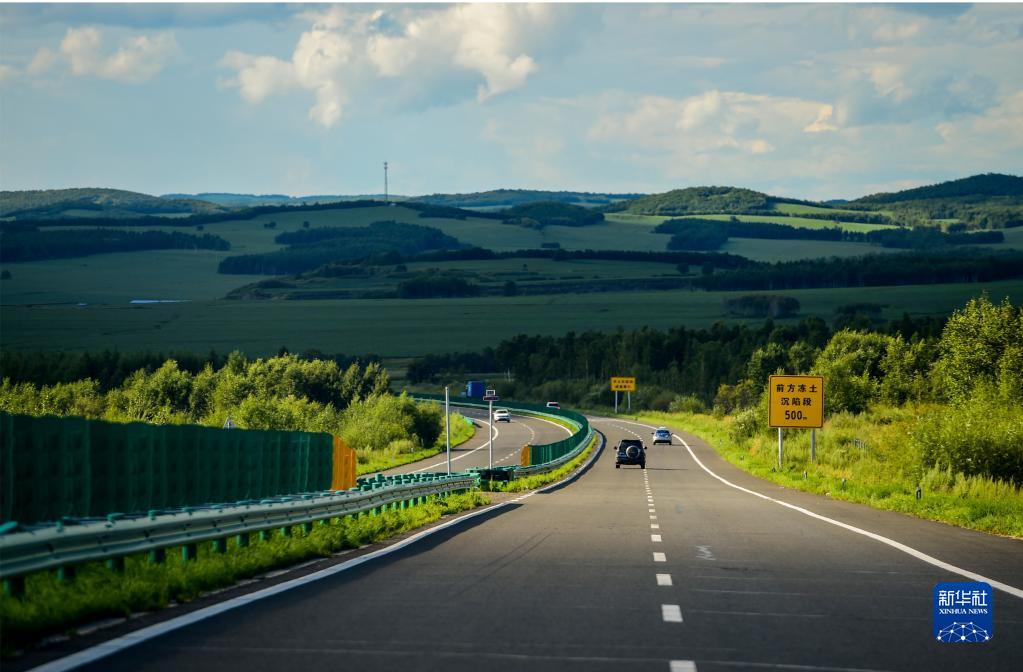 8月6日,汽车行驶在鄂伦春自治旗境内的G332国道上。新华社记者 连振 摄