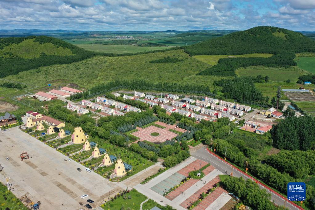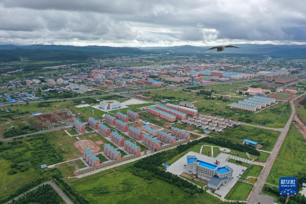 这是8月6日拍摄的鄂伦春自治旗大杨树镇多布库尔猎民村(无人机照片)。新华社记者 刘磊 摄