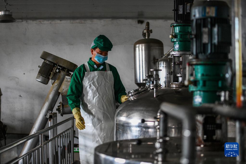 8月6日,工人在鲜卑源酒业啤酒生产线上忙碌。新华社记者 刘磊 摄