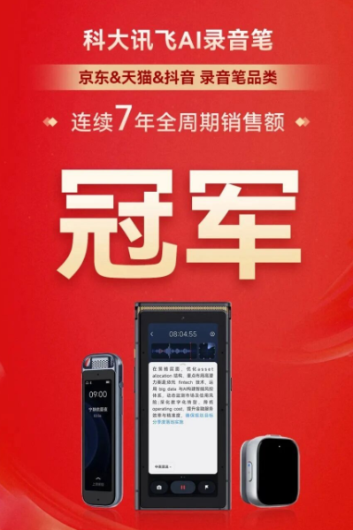 在高效记录与会议协作场景中,科大讯飞的两款产品同样交出了优异答卷。科大讯飞AI录音笔凭借高清录音、实时转写、智能整理等核心功能,解决了用户“记录难、整理繁”的痛点,连续7年稳居三大平台录音笔品类全周期销售额冠军;科大讯飞AI会议耳机则聚焦远程办公需求,将优质音质与智能降噪、会议纪要生成等功能结合,连续4年拿下三大平台会议耳机品类全周期销售额冠军,成为远程会议、线上沟通的“得力助手”。这两款产品的持续热销,进一步丰富了科大讯飞的职场AI硬件生态,也让更多用户感受到智能技术带来的便捷。
